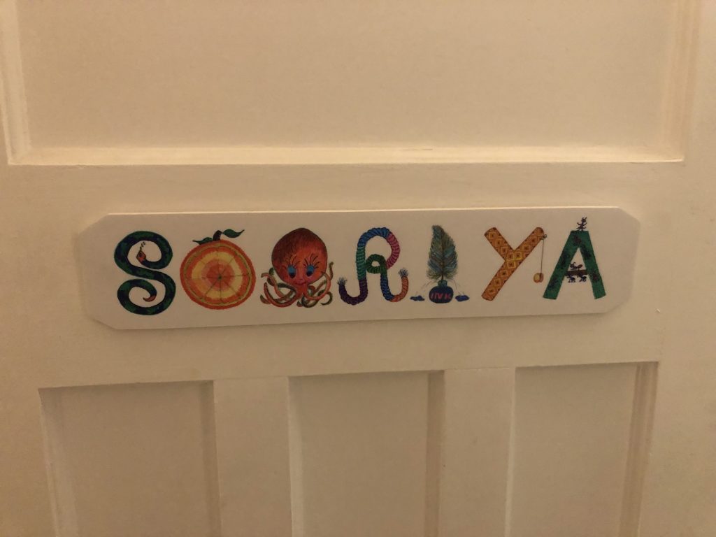 Illustrated by fine watercolour pens and letters mounted on foam panel.